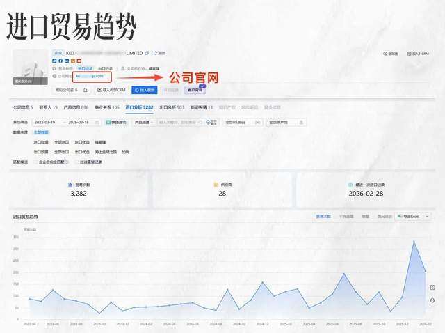 新玩法:借助【商情洞察】,团队不再盲目群发,而是先做客户“背调”,分析进口贸易趋势、比对供应商名单、深挖官网业务定位。