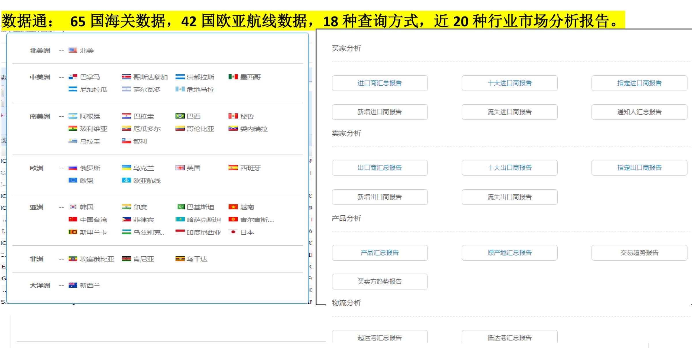 USDT钱包海关数据库,实时给予全球涵盖65国海关数据,42国欧亚航线数据,100+亿实时贸易数据,定位1.8亿全球企业信息,帮助您分析全球市场贸易趋势及分布,为您的产品快速、精准、科学地锁定热销国家和新兴市场。